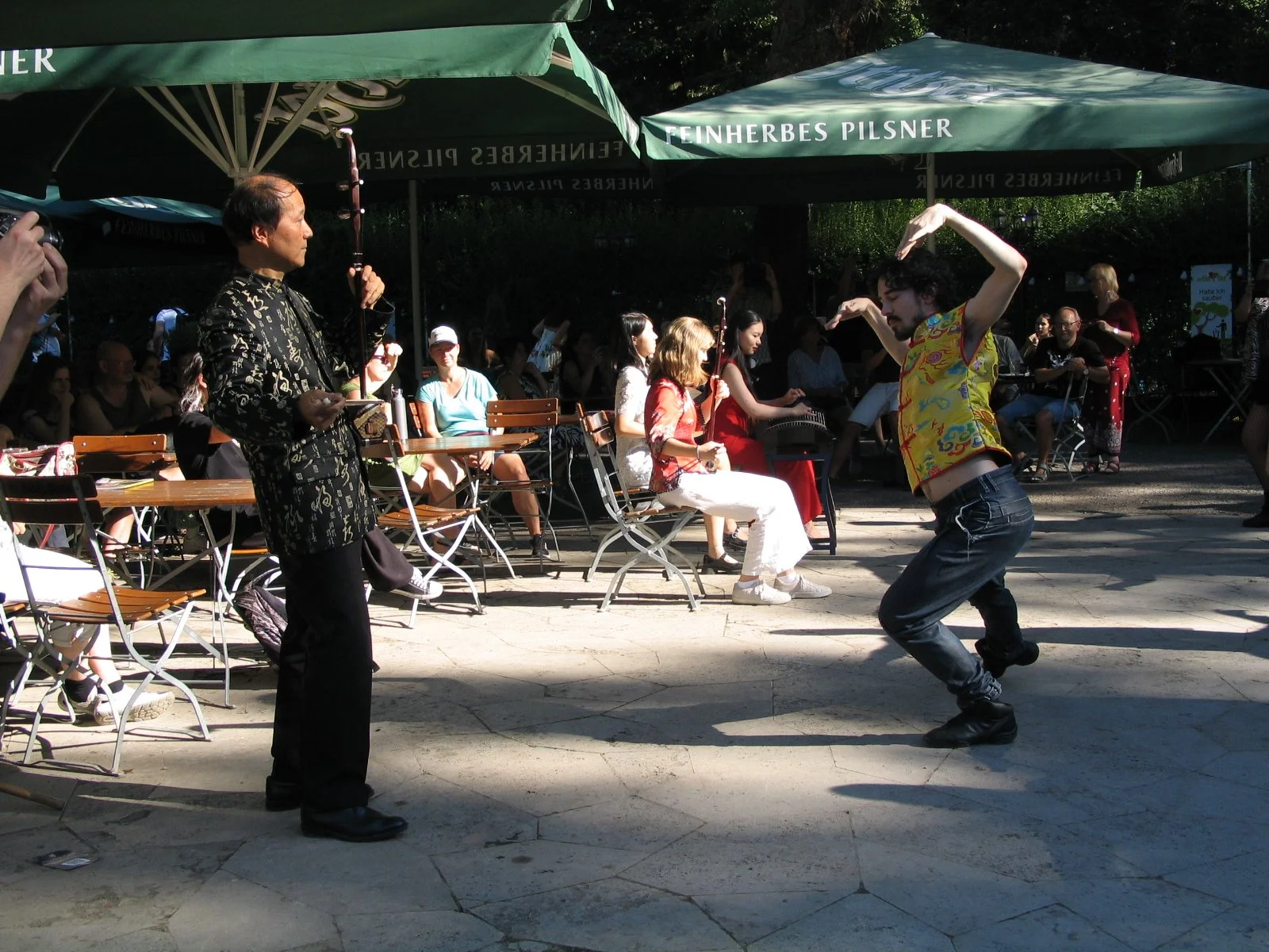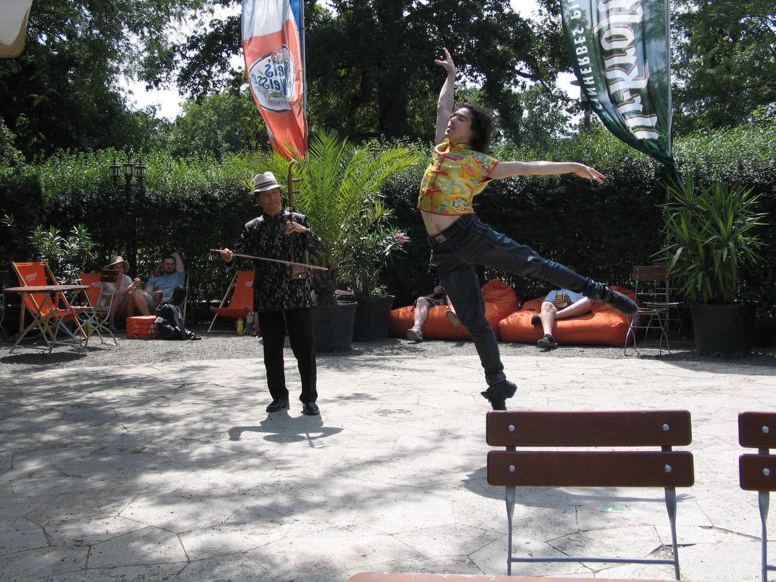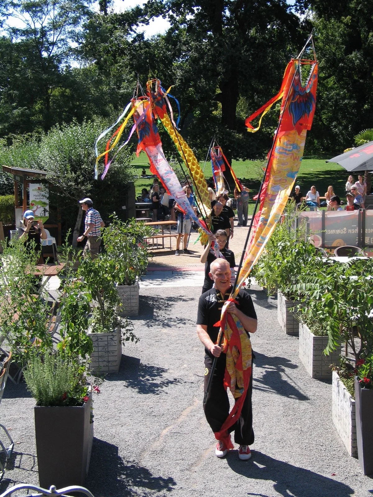 Im Pavillon wurde ein Programm mit Musik und Tanz deutscher und chinesischer Künstler geboten; auf Freiflächen im Biergarten gab es Vorführungen von Kampfkunst- und Qigong-Gruppen.