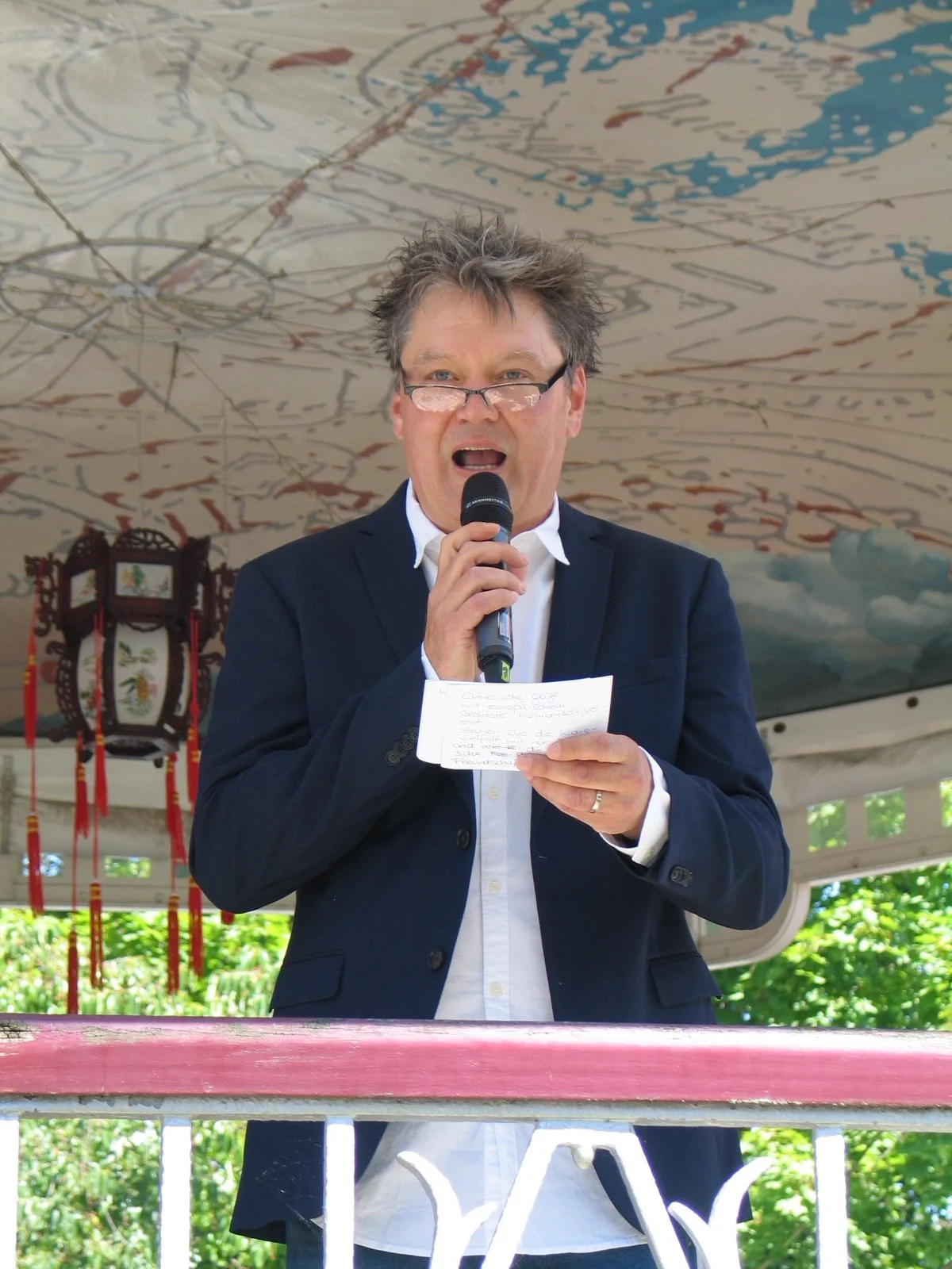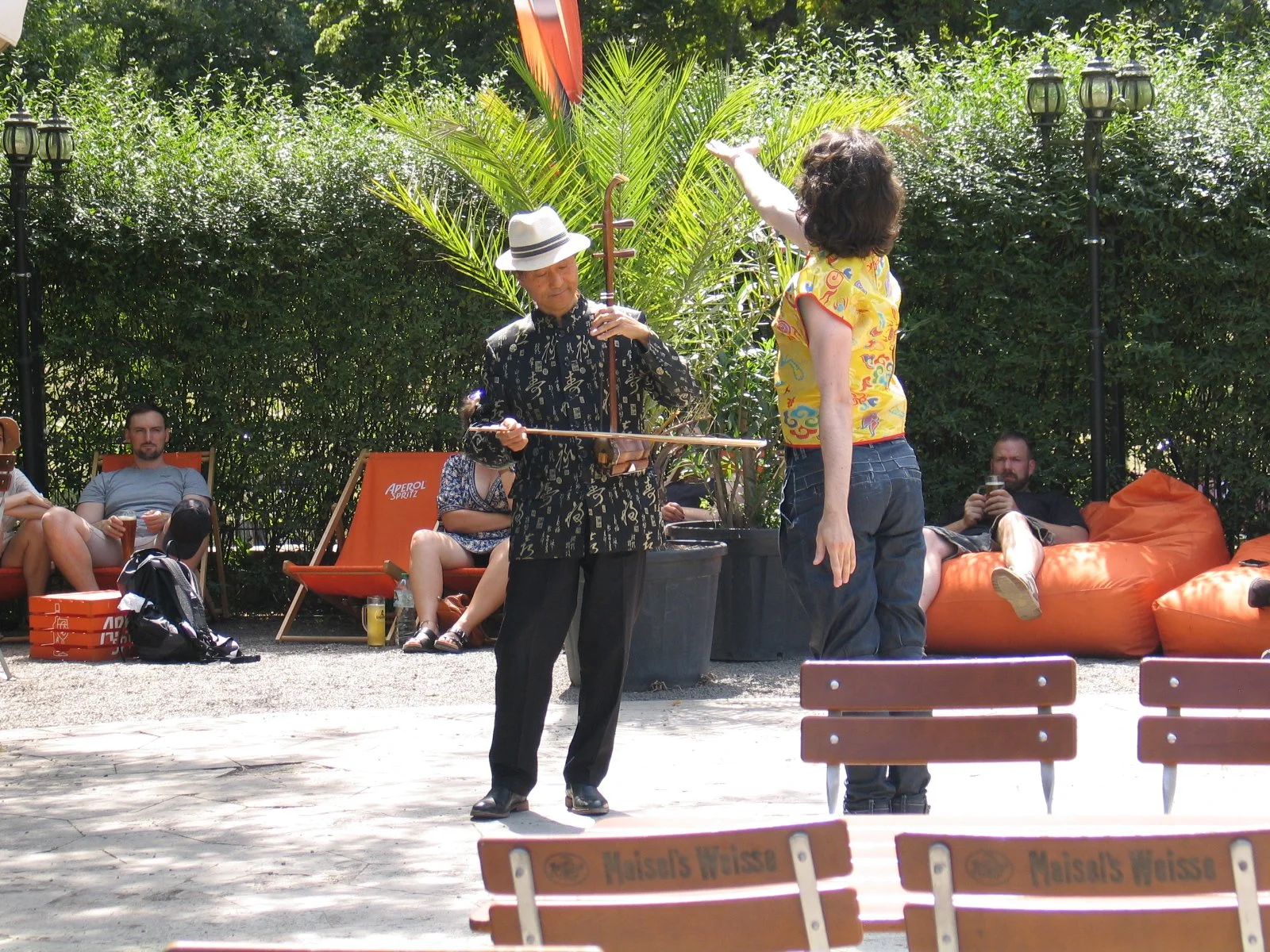 Am 23.8.25 fand am Musikpavillion im Klara-Zetkin-Park das 7. Deutsch-Chinesische Sommerfest statt. Die Vereinsvorsitzende Barbara Artelt eröffnete mit einer kleinen Rede das Fest. Durch das in bewährter Weise vom stellvertretenden Vorsitzenden Jianguo Lu zusammengestellte Programm führte wie im letzten Jahr der Leipziger Kabarettist Meigl Hoffmann auf seine unnachahmlich charmante Art.