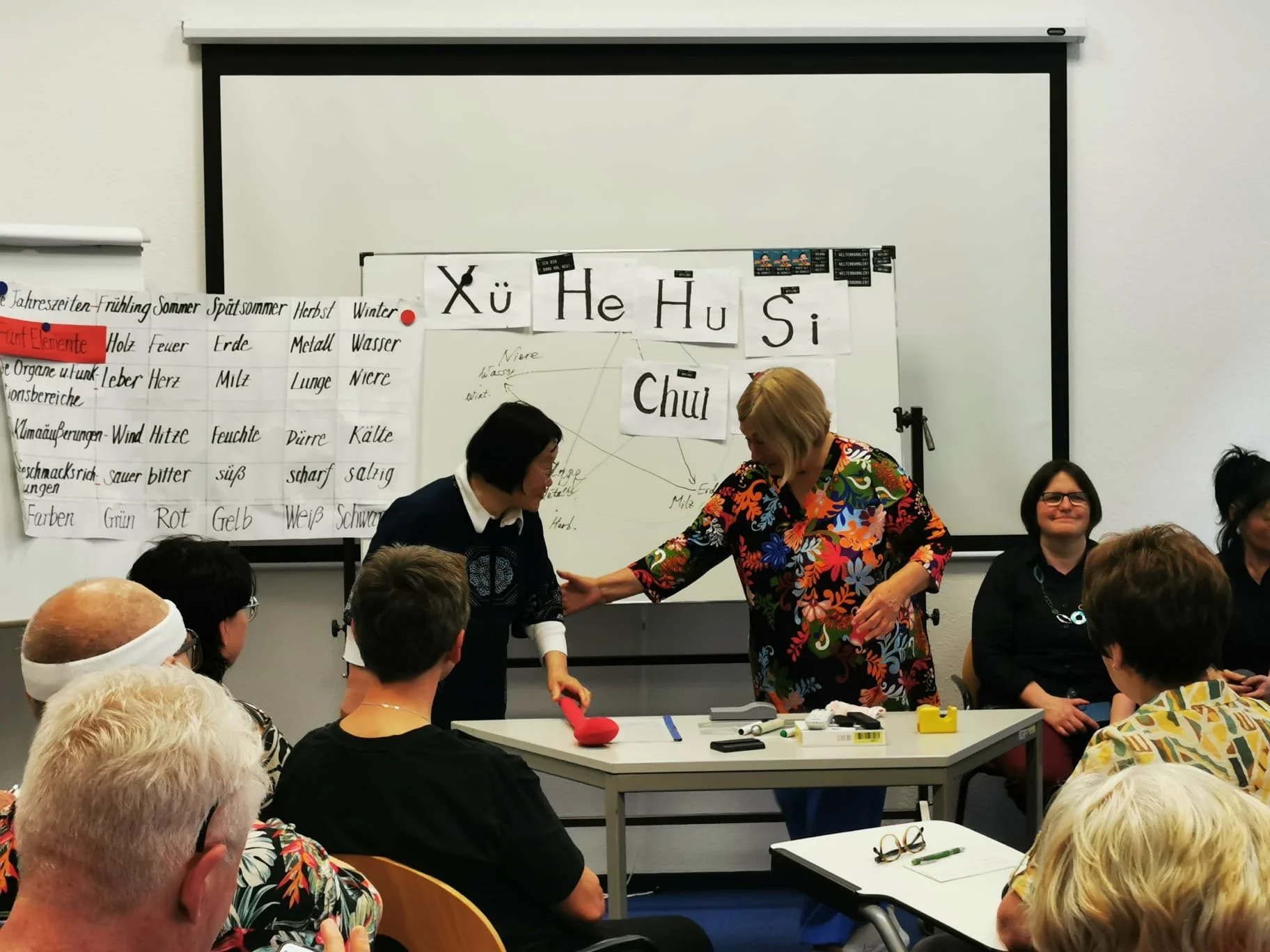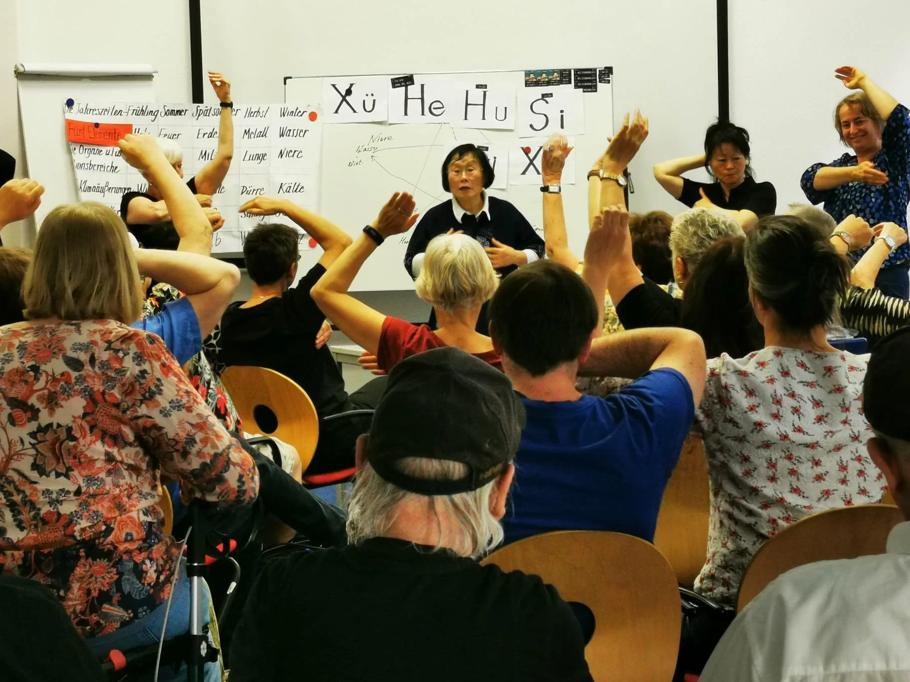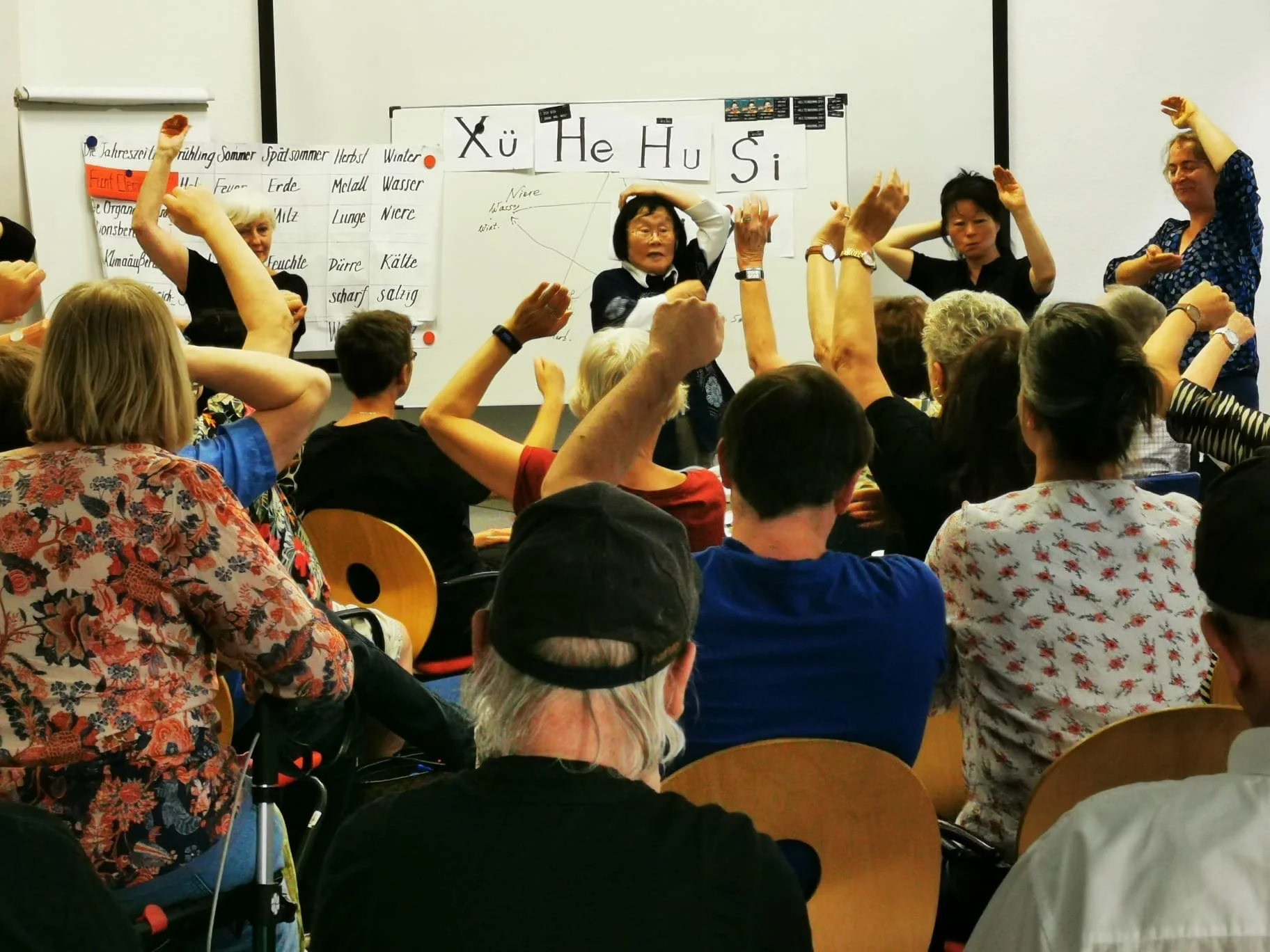 Unser Themenabend zu den fünf Elementen in der Traditionellen Chinesischen Medizin war ein voller Erfolg – rund 40 Gäste nahmen teil. Die Referentin Frau Liren Lu, TCM-Expertin und Leiterin des Gesundheitszentrums Yangsheng in Leipzig, kam gemeinsam mit vier ihrer Schülerinnen. Mit viel Engagement und Fachwissen führte sie in die Grundlagen der TCM ein und vermittelte anschaulich das ganzheitliche Denken dieser Heilkunst.